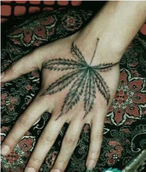 漂亮手背时尚好看的树叶纹身图案 图片