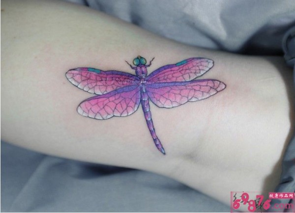 时尚手臂好看的彩色蜻蜓纹身
