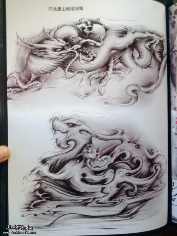 龙纹身手稿_一组老传统黑灰龙手稿纹身图案