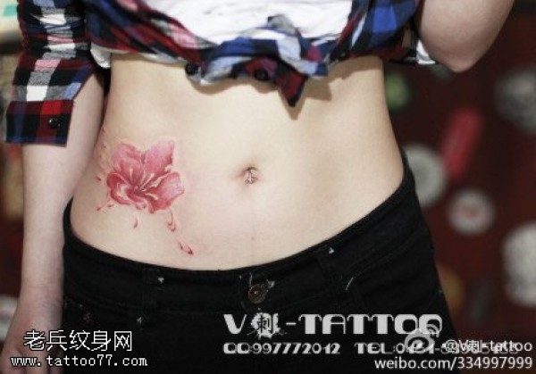 女性腰部莲花花纹刺青_腰部纹身图案大全_纹身图吧