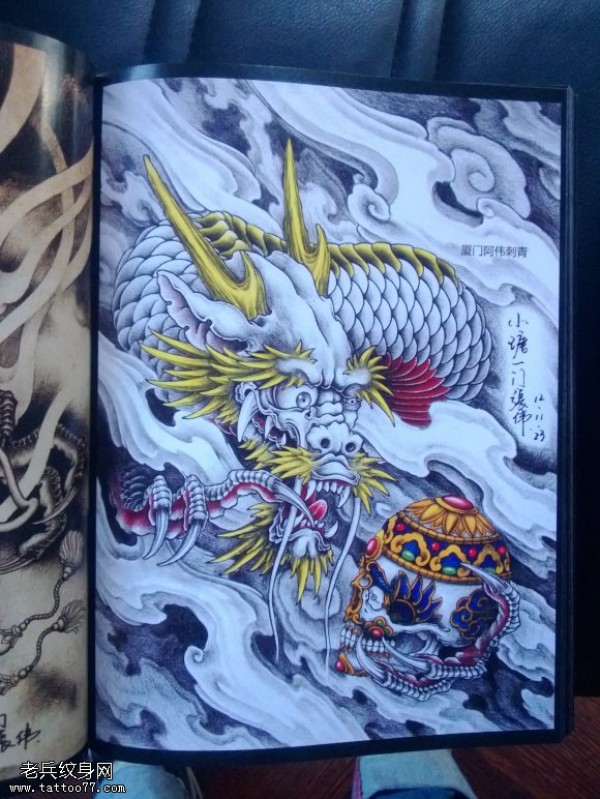 龙纹身手稿_一组老传统黑灰龙手稿纹身图案