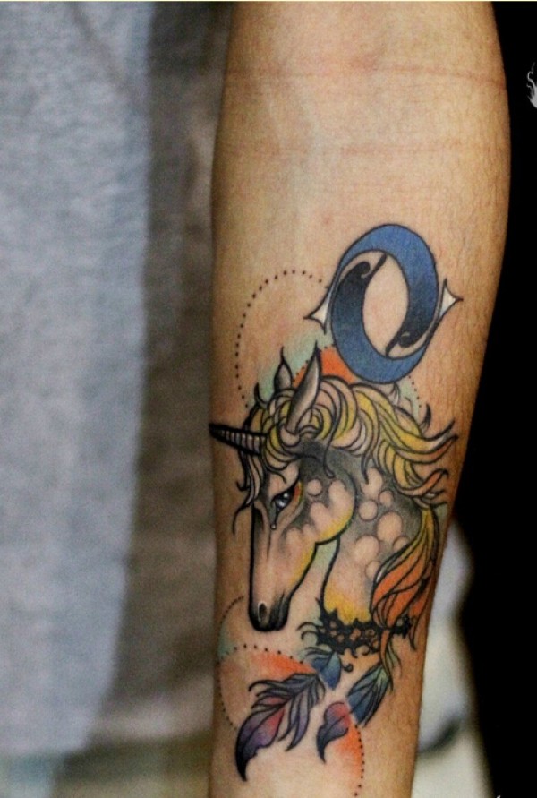 个性手臂时尚好看的彩色独角兽纹身图图片