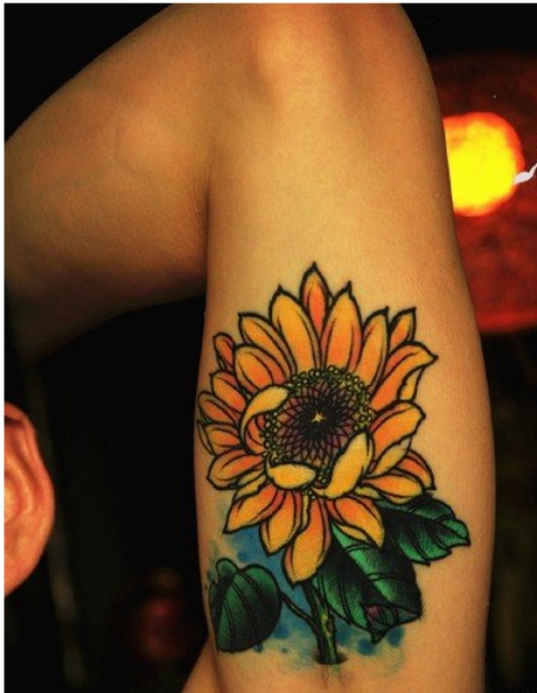 草图感向日葵纹身图案_植物纹身图案大全_纹身图吧