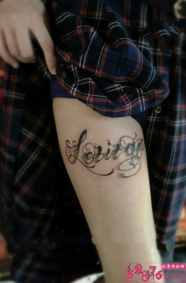 哥特式字母英文大腿纹身图片