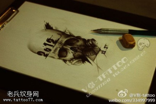 世界末日骷髅头纹身图案手稿