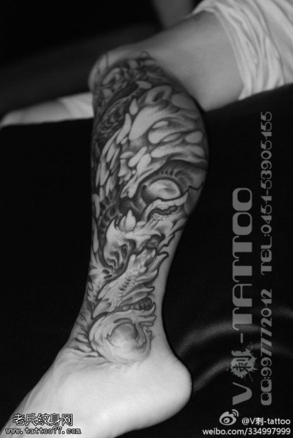 花腿纹身--一组大黑腿纹身图案作品欣赏