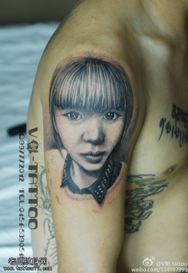 女性肩部肖像刺青_肖像纹身图案大全_纹身图吧