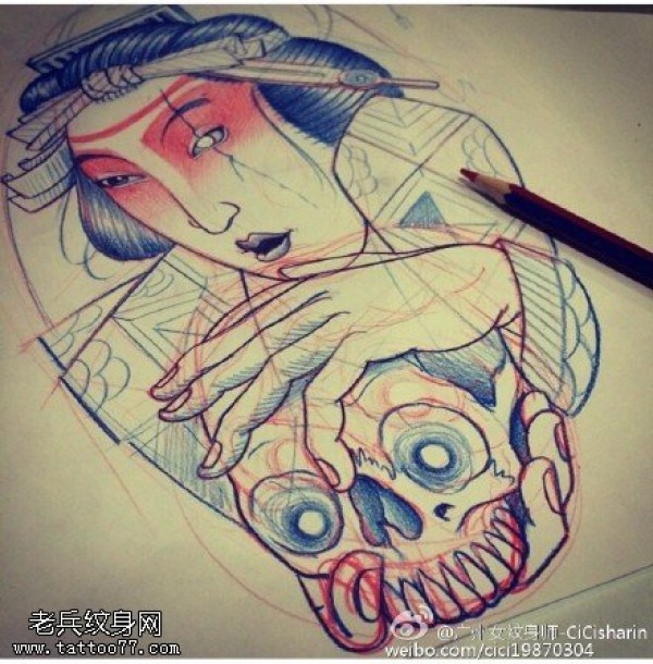 能面万媚纹身手稿_52张日式能剧面具纹身手稿图案素材欣赏
