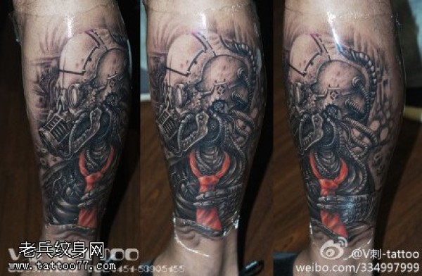 花腿纹身--一组大黑腿纹身图案作品欣赏