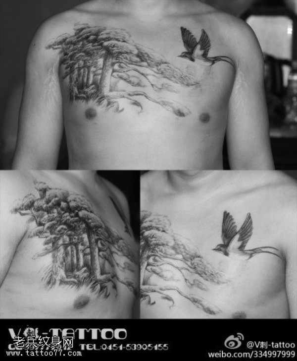 纹身图案胸部男 简洁大方的男生胸部纹身图案