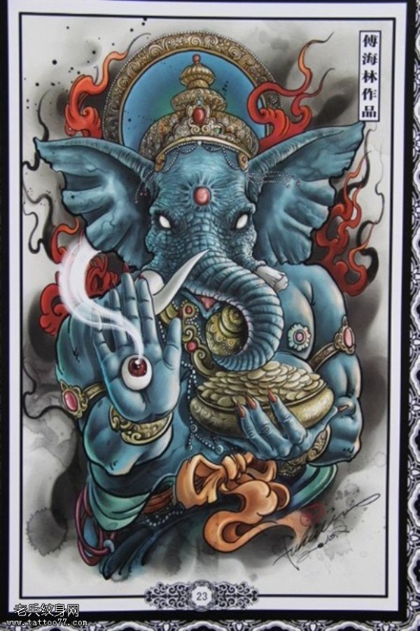 能面万媚纹身手稿_52张日式能剧面具纹身手稿图案素材欣赏