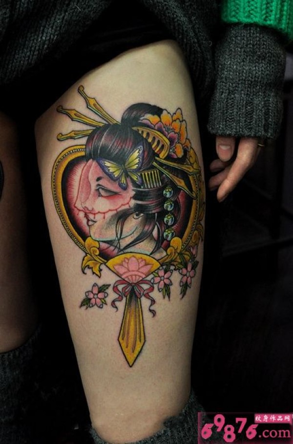 传统花腿纹身--18张传统风格的大花腿纹身图案作品