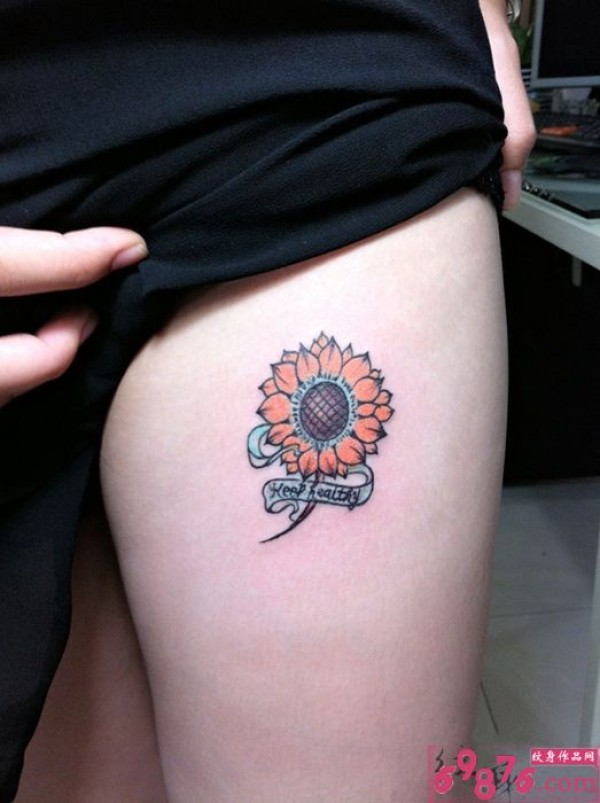 草图感向日葵纹身图案_植物纹身图案大全_纹身图吧