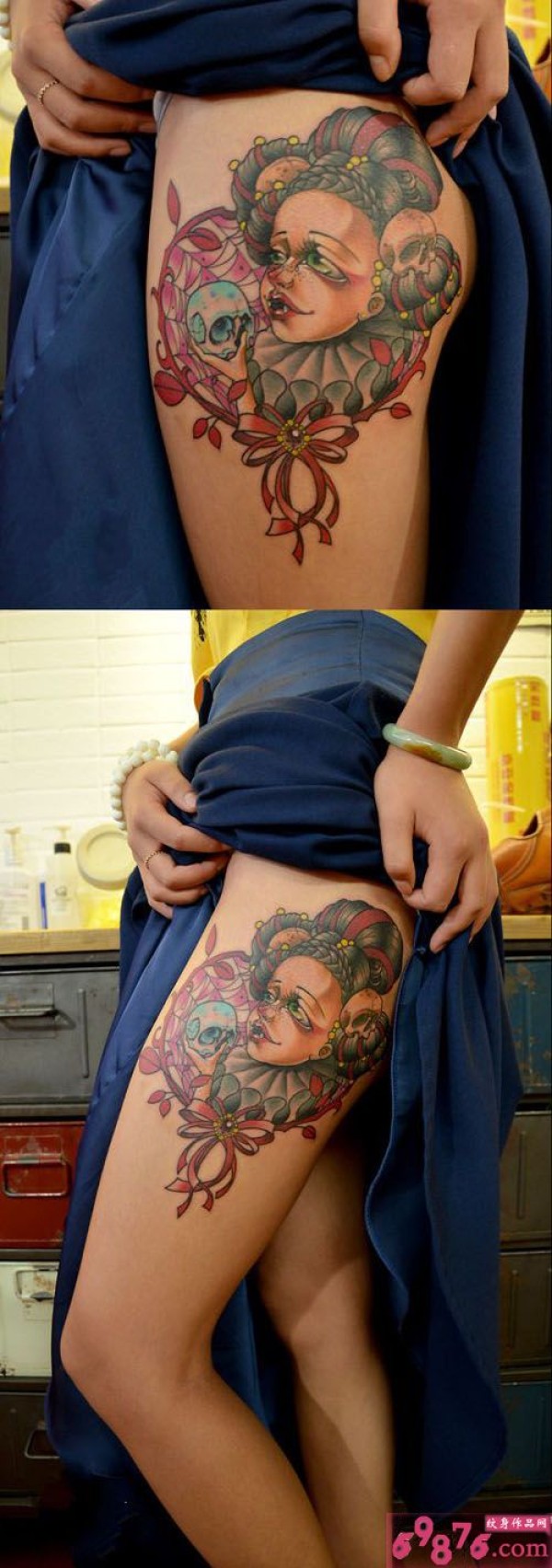 传统花腿纹身--18张传统风格的大花腿纹身图案作品