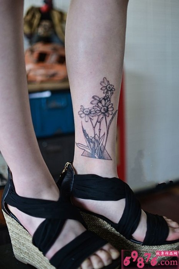 清新花朵腿部纹身图案图片_植物纹身图案大全_纹身图吧
