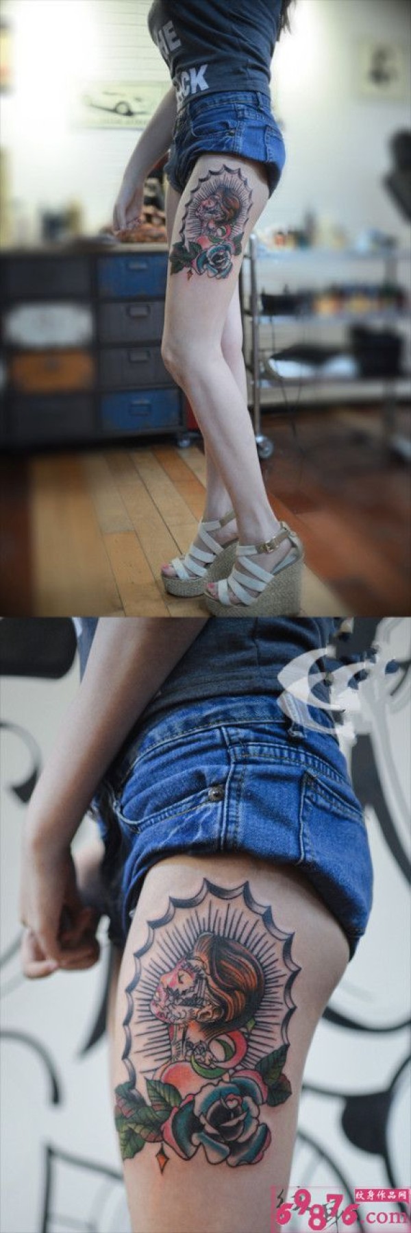 长腿美女个性纹身图片