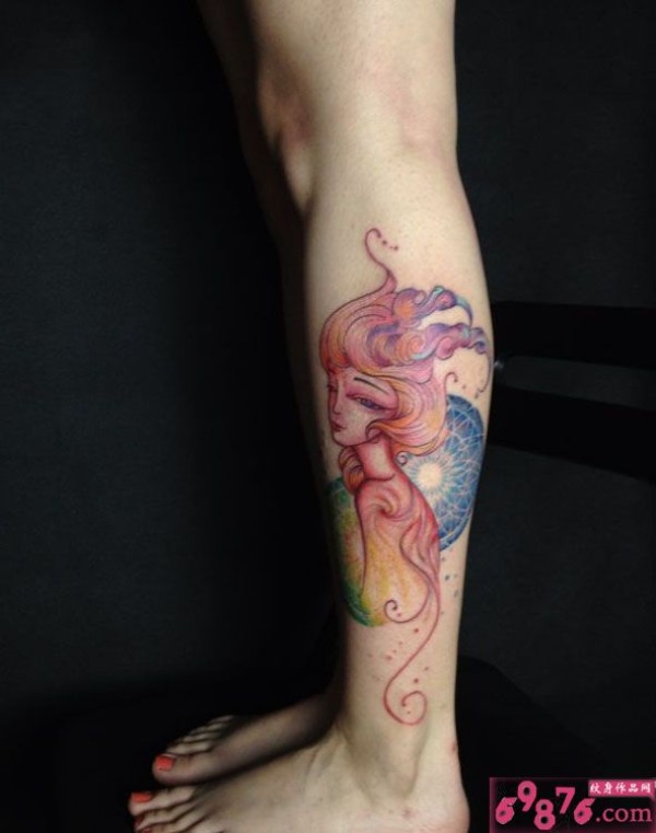 复古唯美精灵美女小腿纹身图片