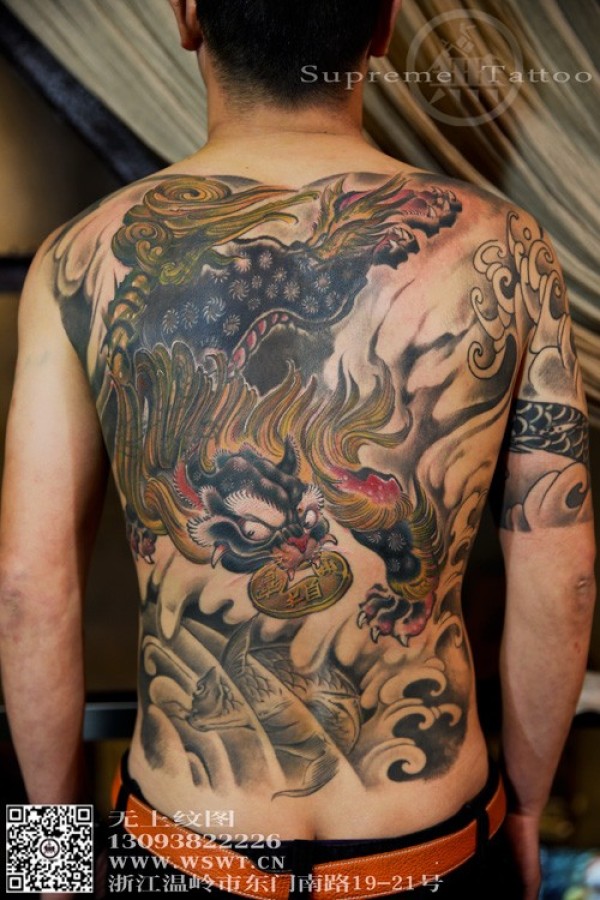 纹身遮盖,龙变貔貅