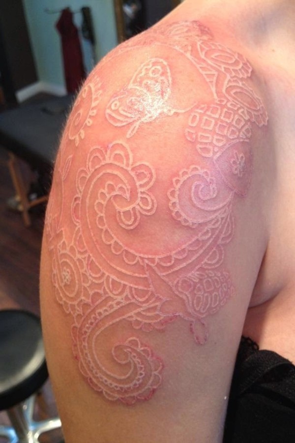 女生肩花纹身_15张女性双肩对称的肩花纹身图案作品图片
