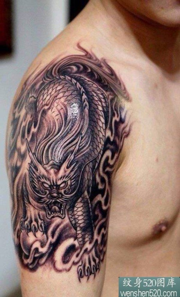 龙纹身手稿_一组老传统黑灰龙手稿纹身图案