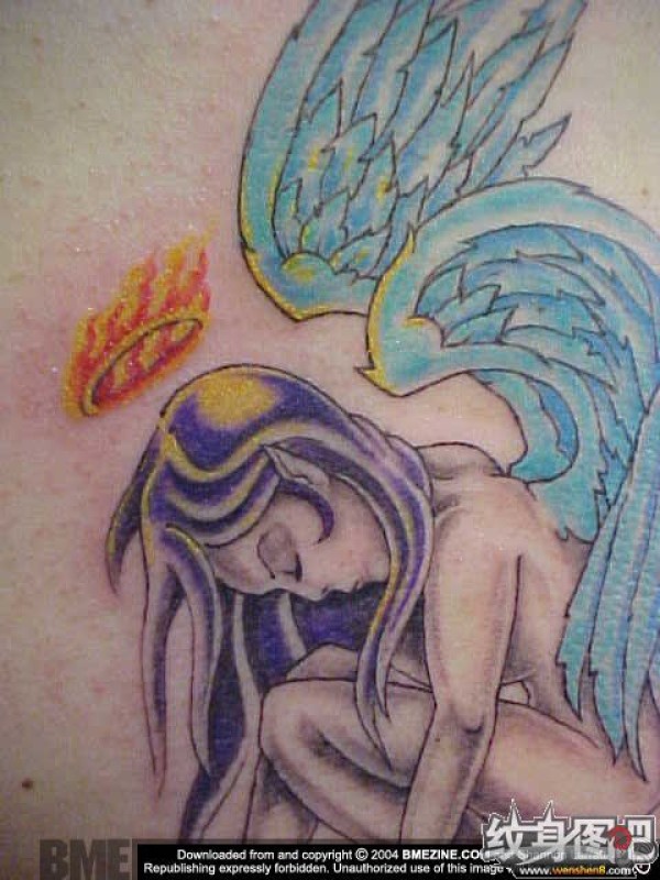 小宇宙就要爆发的蓝色羽翼的天使纹身