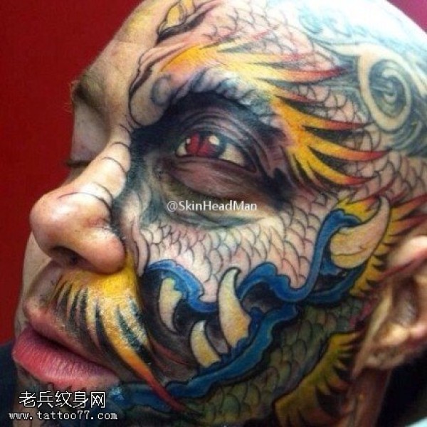 霸气男头部时尚纹身图片_头部纹身图案大全_纹身图吧