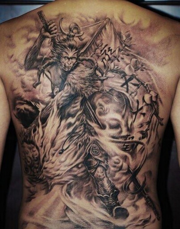 帅气的满背齐天大圣孙悟空纹身