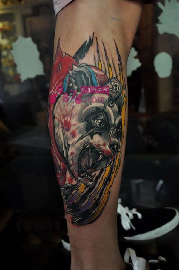 花腿纹身--一组大黑腿纹身图案作品欣赏