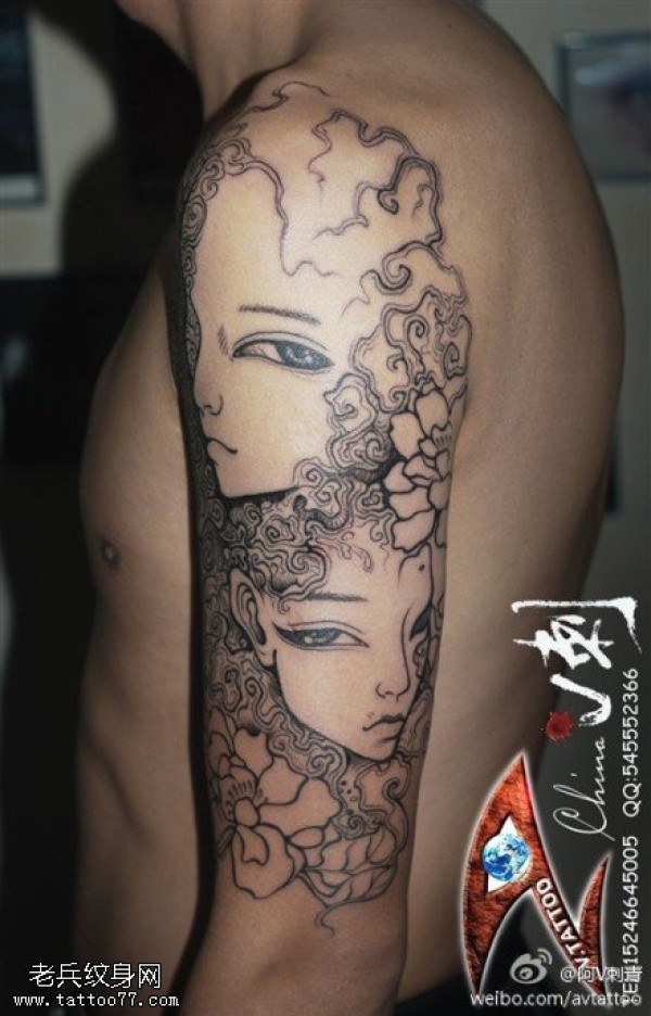 能面万媚纹身手稿_52张日式能剧面具纹身手稿图案素材欣赏