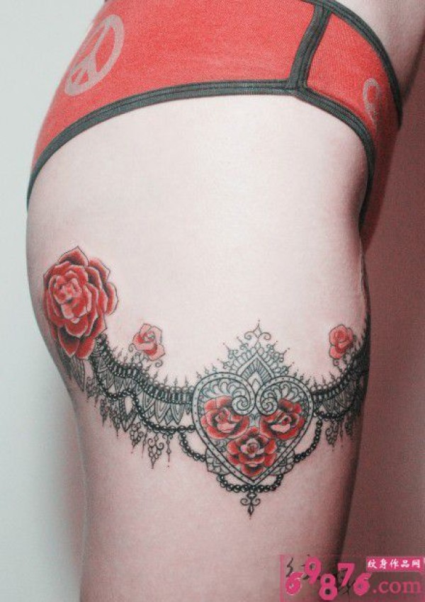 性感蕾丝大腿纹身图片