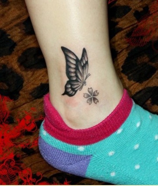 清新小桃花脚踝纹身_脚部纹身图案大全_纹身图吧