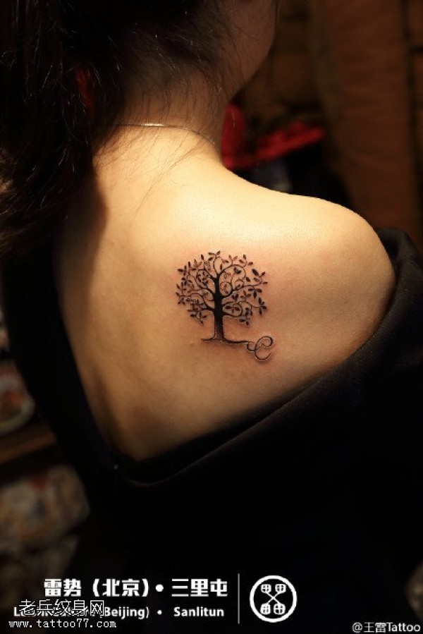 后肩唯美花藤英文图案图片_植物纹身图案大全_纹身图吧