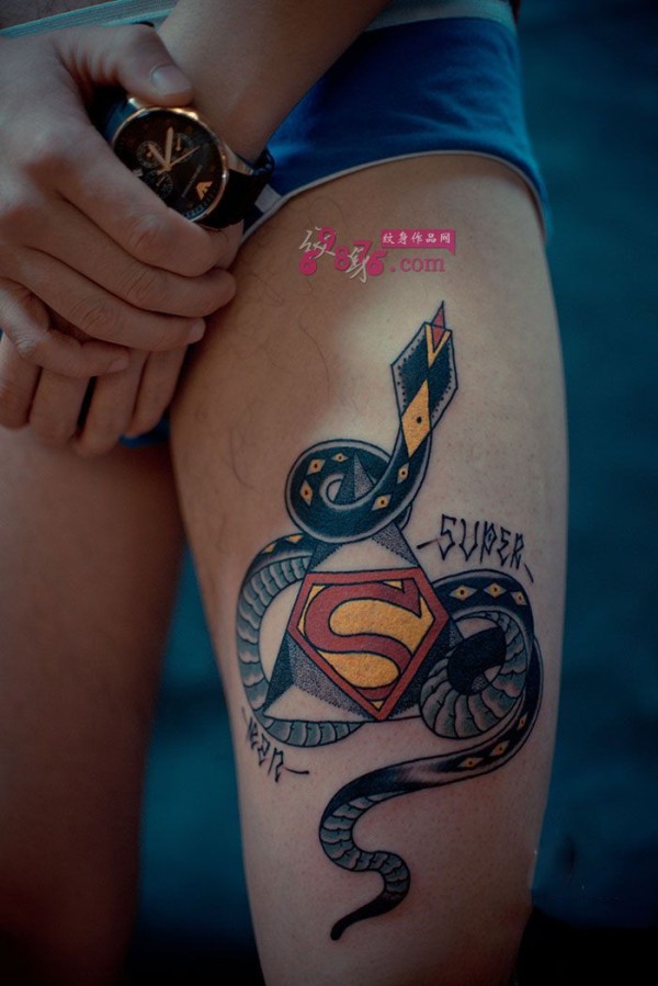 创意超人印章与蛇纹身图片
