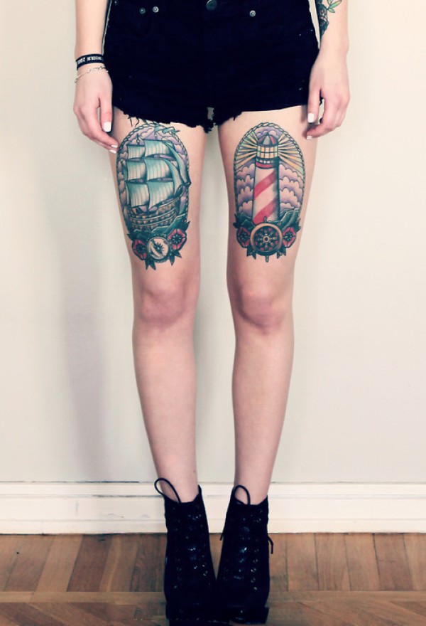 传统花腿纹身--18张传统风格的大花腿纹身图案作品