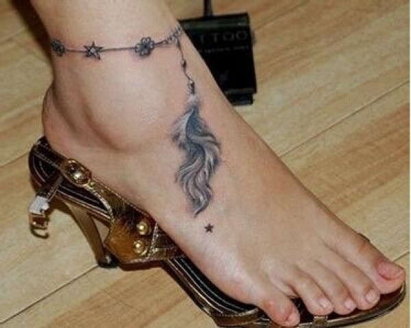 脚踝羽毛文身作品