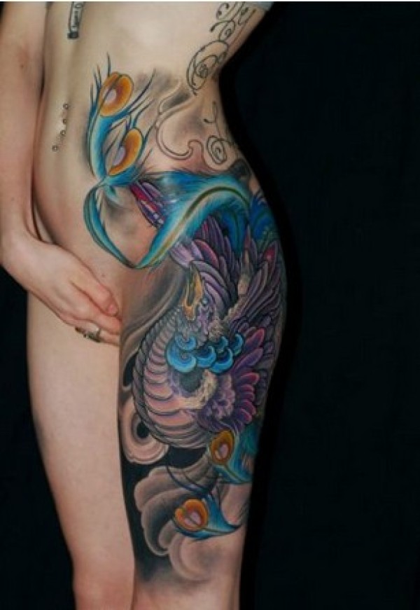 传统花腿纹身--18张传统风格的大花腿纹身图案作品