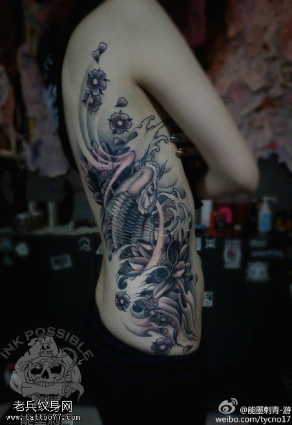 女性腰部莲花花纹刺青_腰部纹身图案大全_纹身图吧