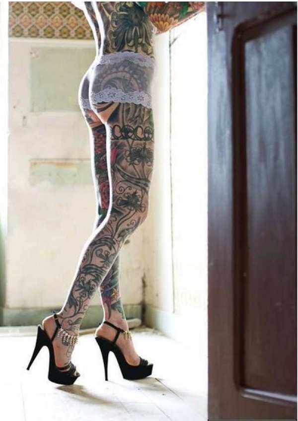女孩腿部唯美刺青_腿部纹身图案大全_纹身图吧