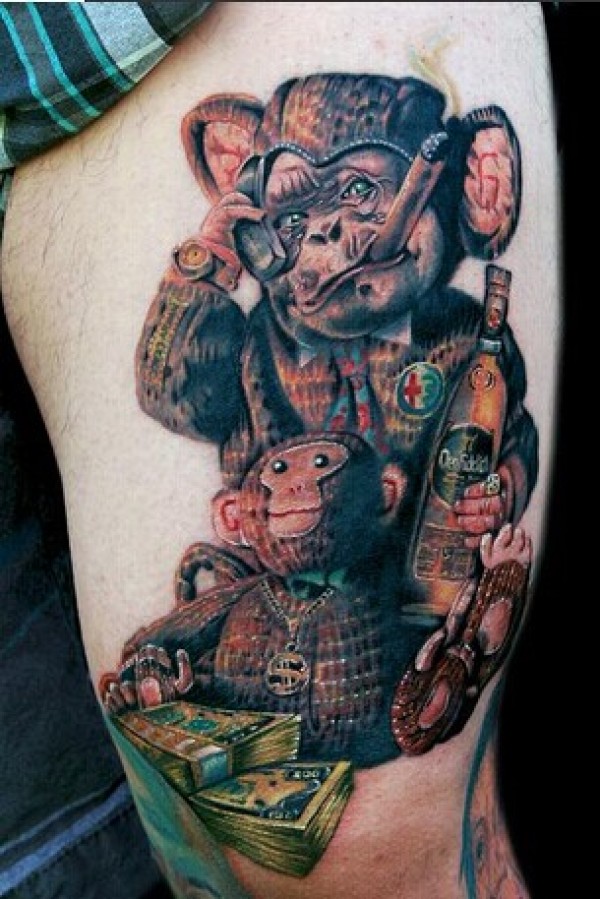 传统花腿纹身--18张传统风格的大花腿纹身图案作品