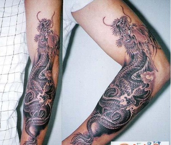 龙纹身手稿_一组老传统黑灰龙手稿纹身图案