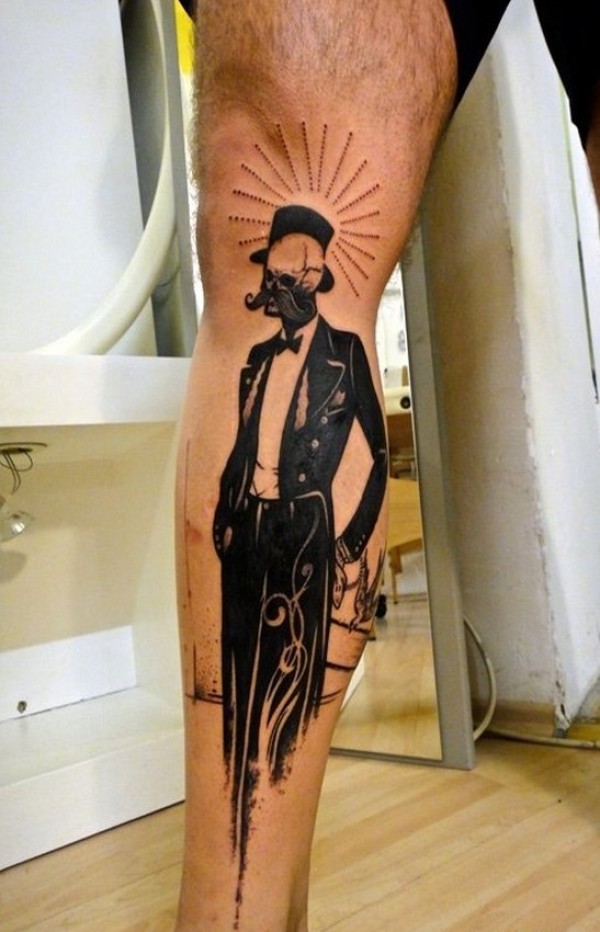 花腿纹身--一组大黑腿纹身图案作品欣赏
