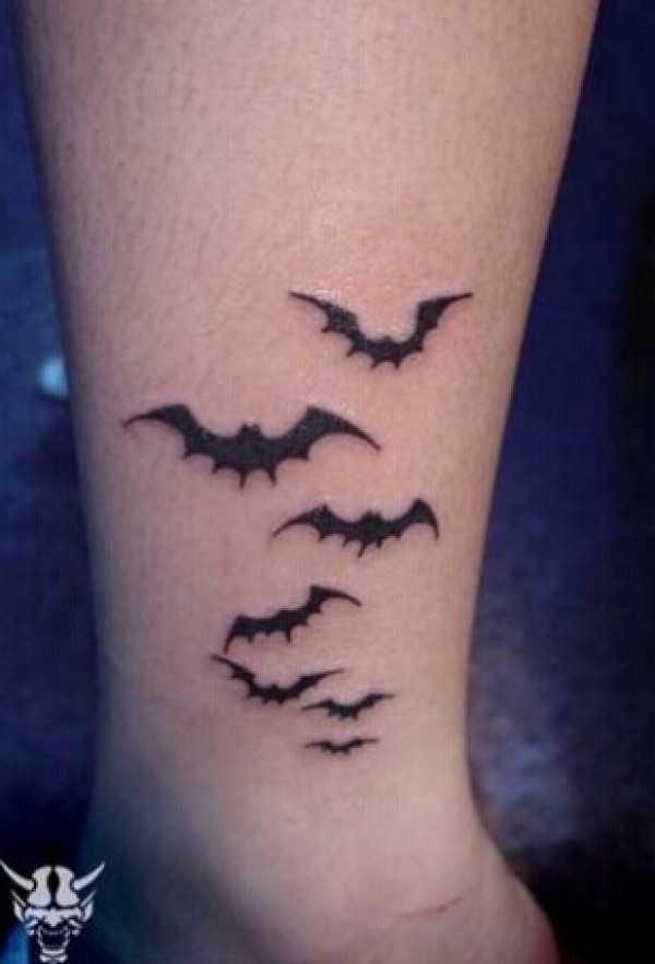 男生腿部清新好看的蝙蝠群飞翔图纹身图片