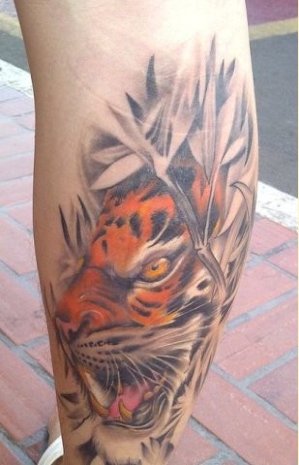 花腿纹身--一组大黑腿纹身图案作品欣赏