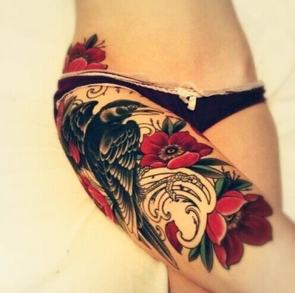 传统花腿纹身--18张传统风格的大花腿纹身图案作品