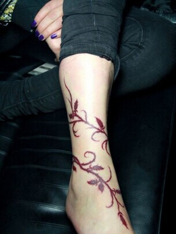 漂亮女生腿部温馨时尚的花卉藤蔓纹身图片