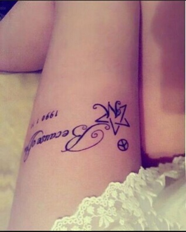 性感美女玉腿部唯美星星英文纹身图片