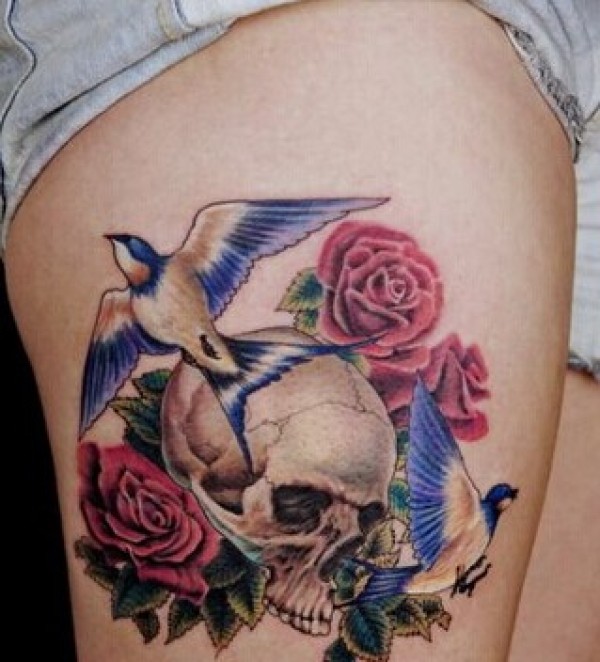传统花腿纹身--18张传统风格的大花腿纹身图案作品