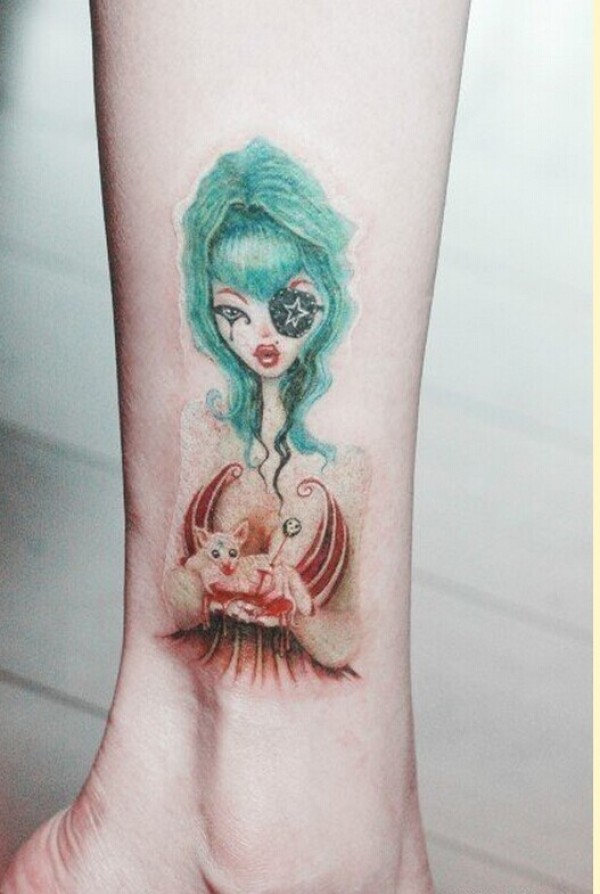 花腿纹身--一组大黑腿纹身图案作品欣赏