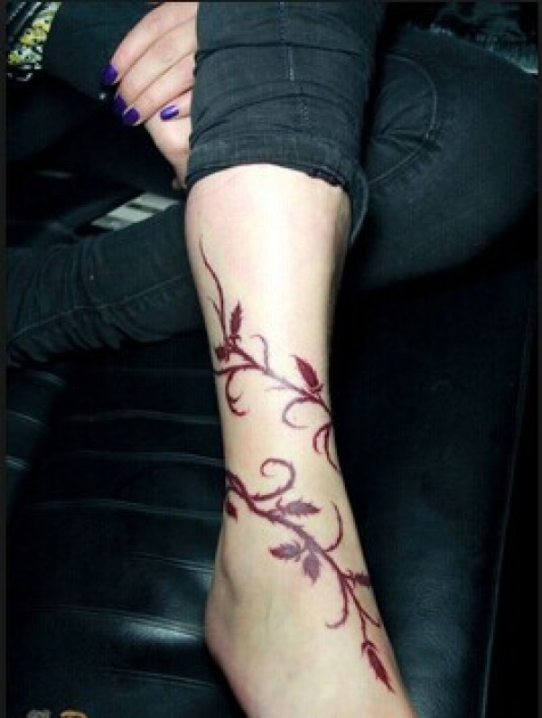女生腿腕唯美时尚的花卉藤蔓纹身