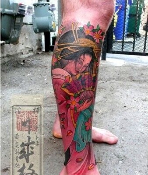 传统花腿纹身--18张传统风格的大花腿纹身图案作品